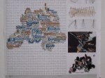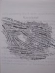 We began the iterative exchange between two modes of knowledge production by synergistically mapping the philosophy of language that Merleau Ponty proposes onto the structure of the form of the poem “Breathcrystal,” by Paul Celan. In the light of Merleau-Ponty’s phenomenology we considered the ways that Celan organizes his poem in plateau-like stanzas that juxtapose extremes of sensorial experiences, in landscapes that are marked by highly idiosyncratic accretions of word play, known as neologisms, that combine nouns to form new words that are highly charged, symbolic sounds—such as hungercandle. The mapping exercise led to a language/making workshop in which students were guided to generate neologisms in the manner of Celan and to compose poems following a skeleton provided by “Breathcrystal.” In the final stage of the exercise, students learned to write on their landscapes to create an architecture-of-the-page that utilized innovations in typography that were introduced by the Dadas.