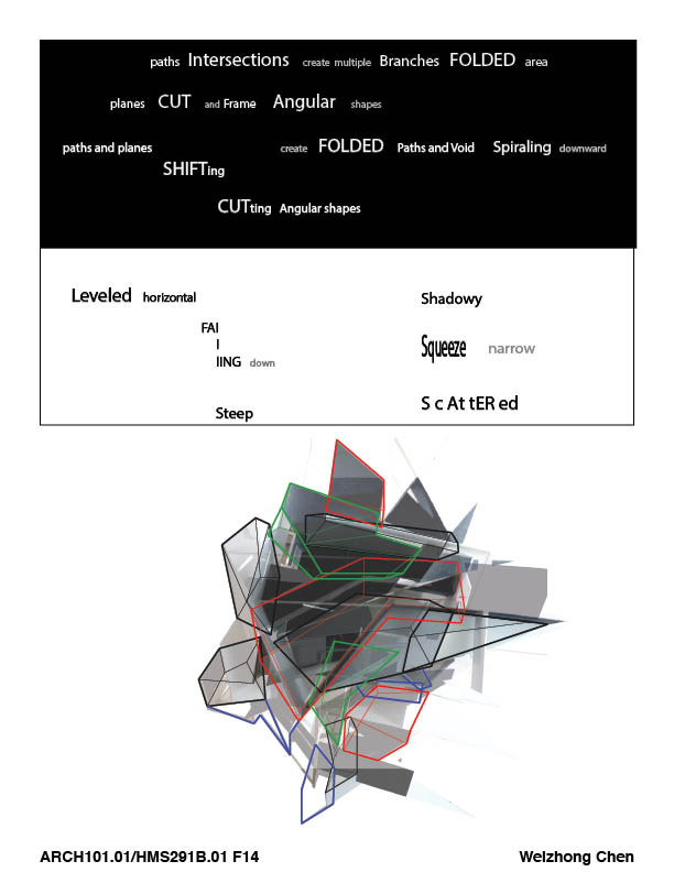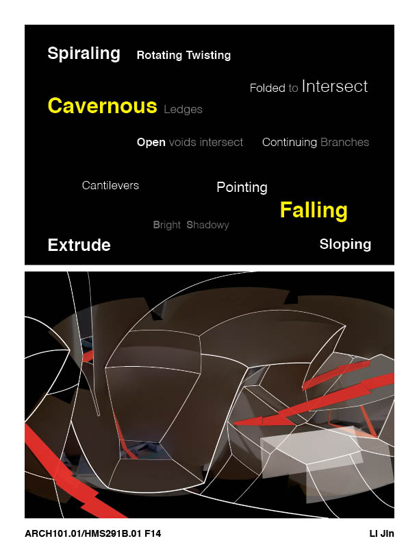 The TEXTSCAPES exhibited here are the result of collaboration between the design studios and introduction to literary and critical studies seminars that are cross linked and integrated under the aegis of The Architecture Writing Program: Language/Making, a transdisciplinary collaboration of the School of Architecture and the School of Liberal Arts and Science.